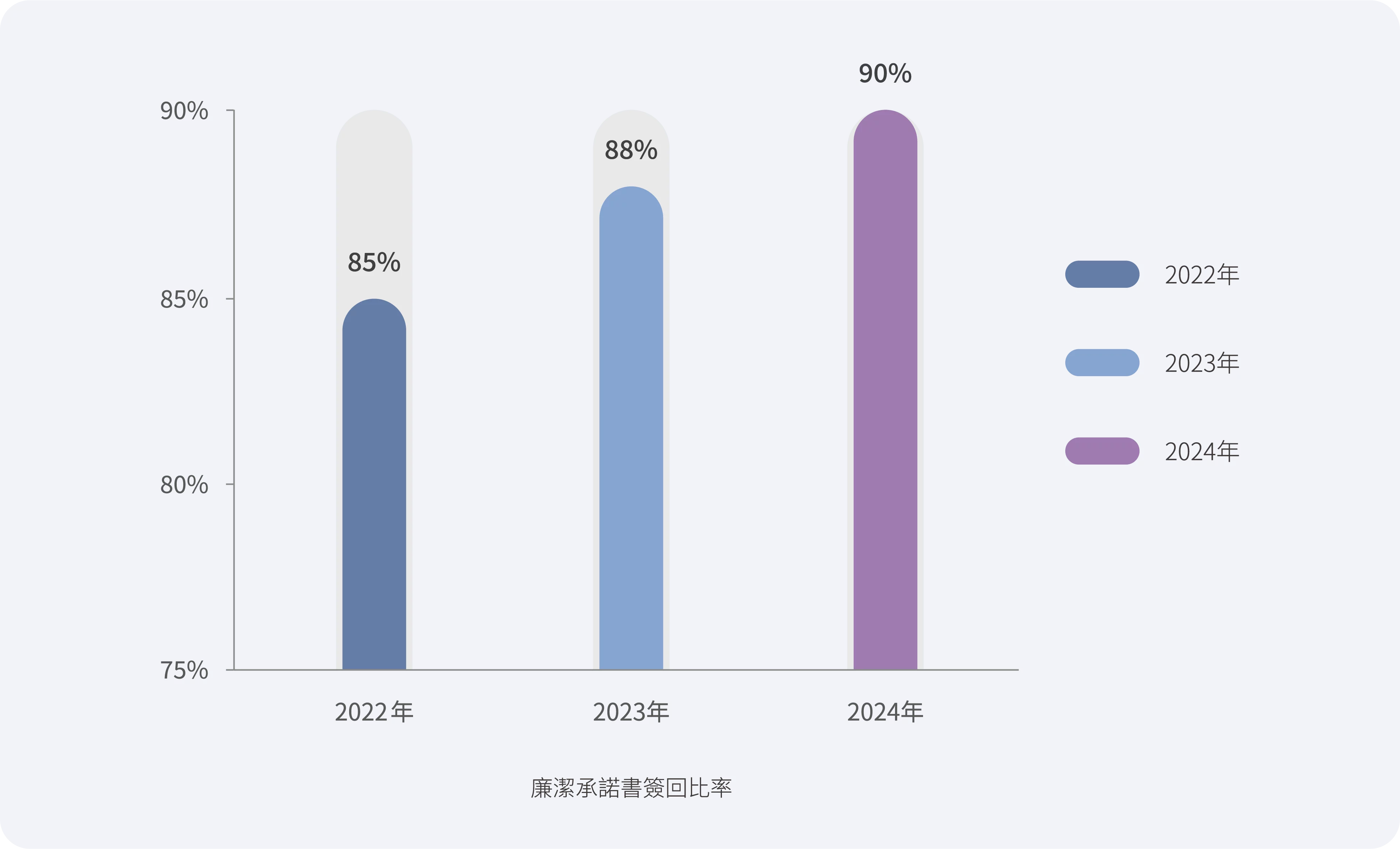 供應商提供餽贈金錢或以交際費用支出換取供應商物品和服務投標優惠待遇的回報是採購過程中最大風險。飛宏「企業道德與商業行為準則」明訂採購人員及供應商之反貪腐及反賄賂政策,2024 年度總計180 家核心供應商中有90% 簽回「廉潔承諾書」,較前一年成長2%。