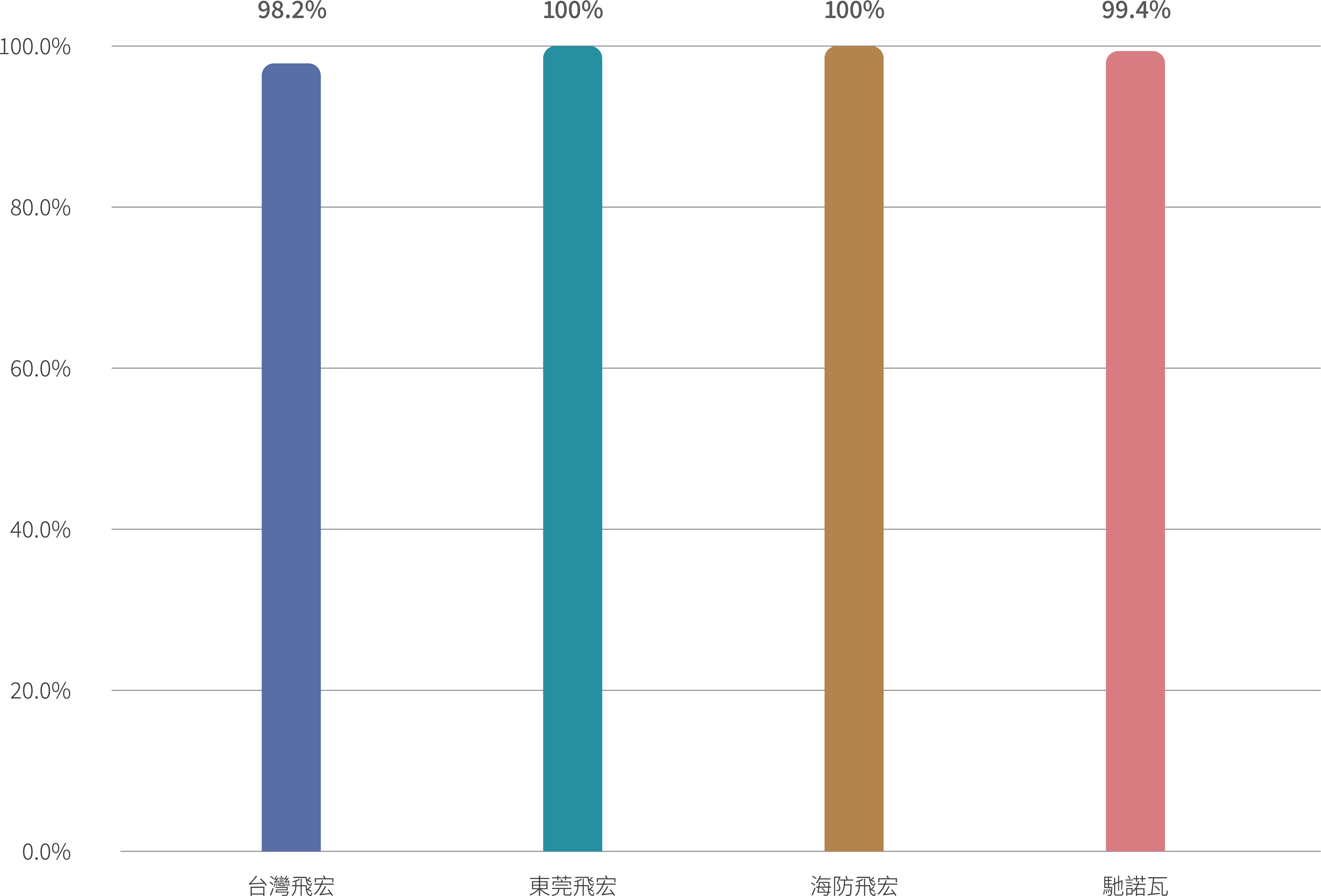 為促進各營運據點當地的就業與經濟發展,飛宏不僅提供當地居民工作機會,更優先考慮當地人才的培育與晉升。2024 年飛宏各據點本地人擔任管理職的比例逾98% 以上,我們相信,當地管理者對於在地文化、產業特性與市場需求有更深刻的洞察,也能更有效地促進團隊協作與資源整合,不僅有助於提升經營效率,更能彰顯飛宏對當地社區的承諾,打造與所在地緊密連結的企業形象。