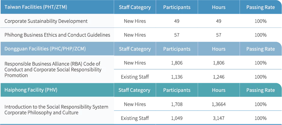 Integrity is Phihong’s core value and the fundamental principle that underpins all business activities. The Company adopts a zero-tolerance policy toward corruption and bribery, and has established the “Code of Ethical Conduct” and the “Business Ethics and Conduct Guidelines.” Both documents have been reviewed and approved by the Board of Directors and clearly define the Integrity Management Policy. This policy applies to Phihong and all its subsidiaries, ensuring that all decisions and actions reflect the Company’s core values and commitment to ethical conduct. To strengthen integrity management, the Legal Affairs Office leads implementation efforts. Internal departments are responsible for executing specific measures and reporting their outcomes to the Board of Directors on an annual basis.