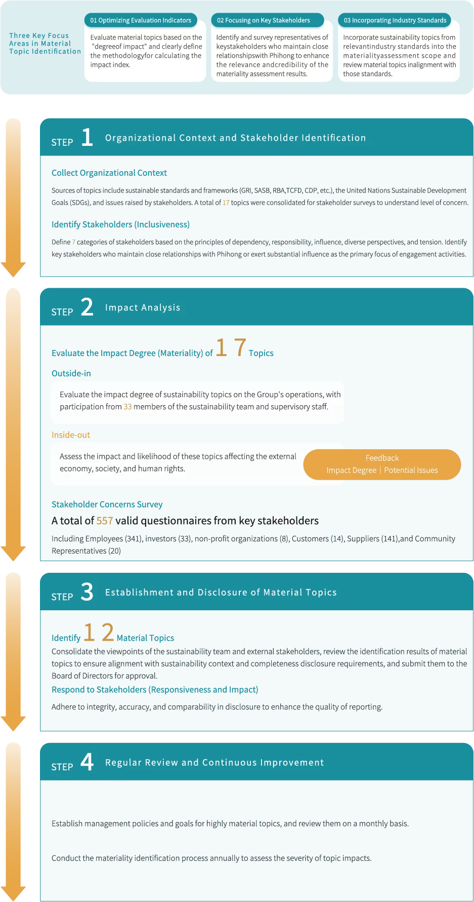 Stakeholder Communication Materiality Analysis Process Identify Organizational Context and Stakeholder Stakeholder Engagement and Communication Channels Impact Analysis of Material Topics Management Policies and Target Setting SDGs in Practice Reporting Channels and Complaint Mailbox Materiality Analysis Process Identify Organizational Context and Stakeholder Stakeholder Engagement and Communication Channels Impact Analysis of Material Topics Management Policies and Target Setting SDGs in Practice Reporting Channels and Complaint Mailbox Materiality Analysis Process