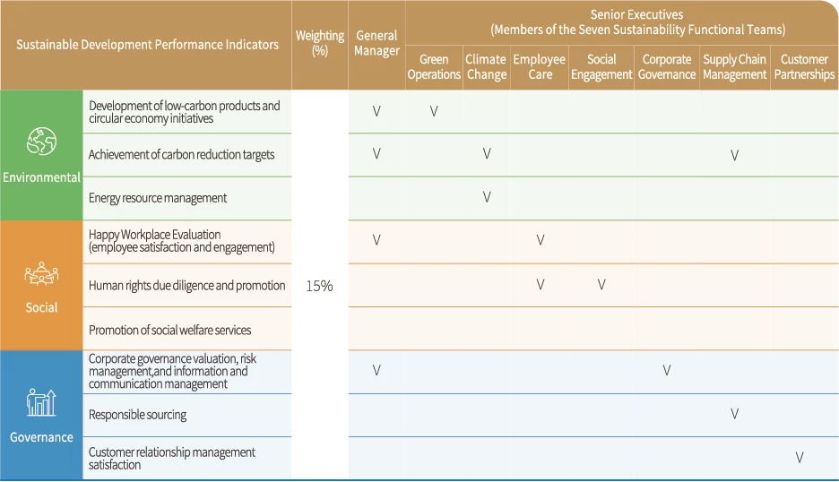 Phihong’s compensation for directors and senior managers is governed by the “Regulations Governing the Remuneration Committee,” with individual remuneration determined based on performance self-evaluation results. The proposed compensation is reviewed by the Remuneration Committee, approved by the Board of Directors, and reported to the General Shareholders’ Meeting.. The salary structure of the Group’s General Manager and senior executives is closely tied to the Company’s operational performance and individual performance indicators. These include non-financial aspects such as corporate governance, green design, and sustainability-related performance indicators, ensuring strong alignment between the remuneration system and the Company’s short-term and long-term operational targets and shareholder interests. Starting from 2023, the remuneration packages for senior executives includes a long-term incentive plan through a stock ownership trust, further integrating the link between remuneration, long-term corporate performance, and the interests of