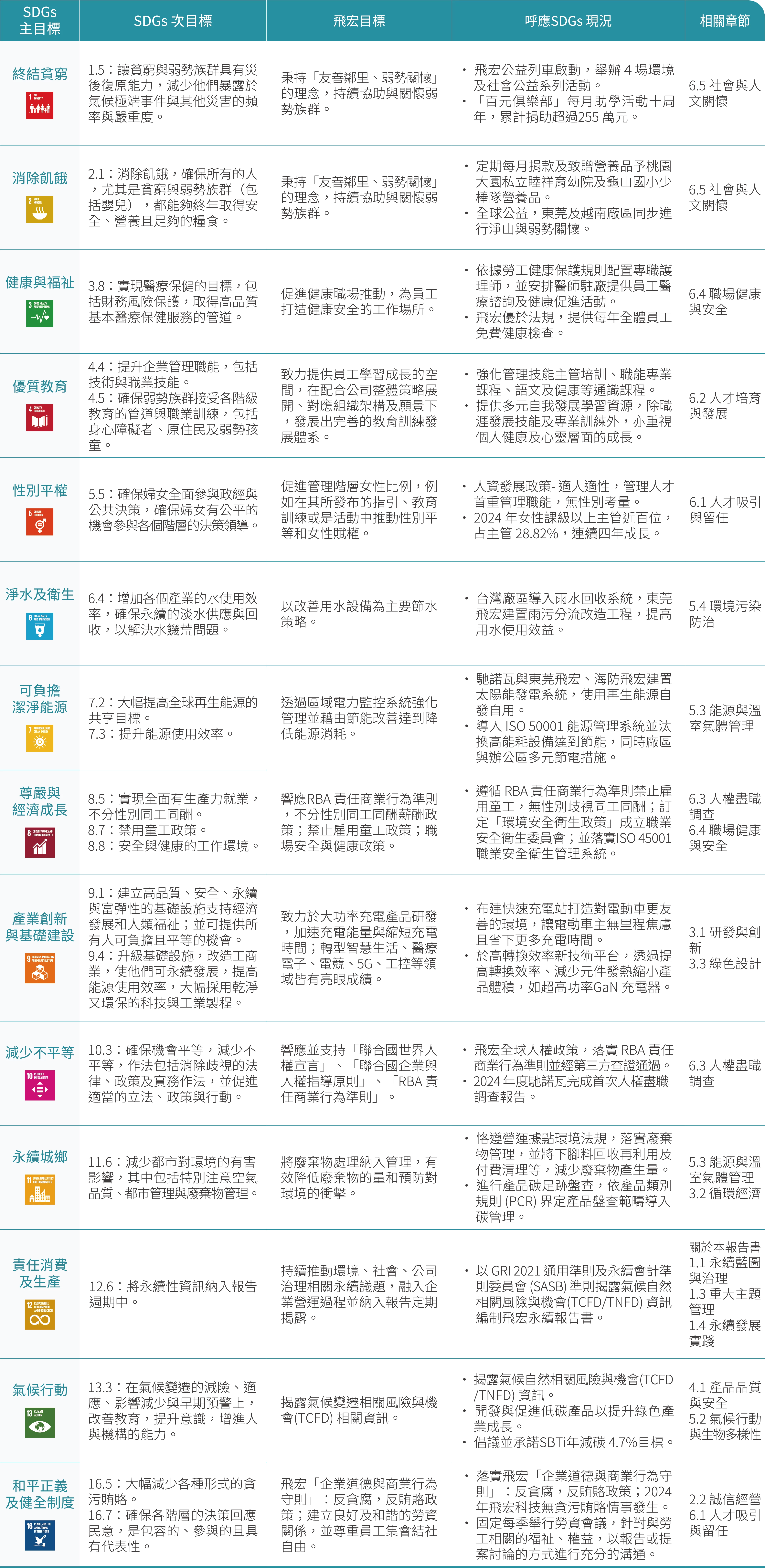 利害關係人 重大性分析流程 組織脈絡與利害關係人鑑別 利害關係人議合與溝通管道 重大議題衝擊分析 管理方針與目標設定 SDG永續發展目標實踐 意見回饋與檢舉信箱 重大性分析流程 組織脈絡與利害關係人鑑別 利害關係人議合與溝通管道 重大議題衝擊分析 管理方針與目標設定 SDG永續發展目標實踐 意見回饋與檢舉信箱 sdg永續發展目標實踐 飛宏以SDGs 17 項核心目標為基礎進行議題鑑別,聚焦其中14 項與飛宏實質業務密切相關的目標,作為年度實踐重點,展現我們深耕永續的承諾。我們將SDGs 精神落實於日常營運流程中,並設定具體目標,由永續發展推動小組定期追蹤執行成果,確保成效。